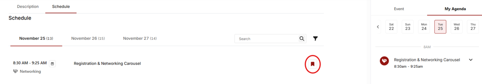 Click 'Add to My Agenda' to build your personal schedule.