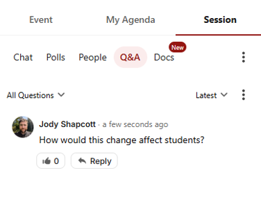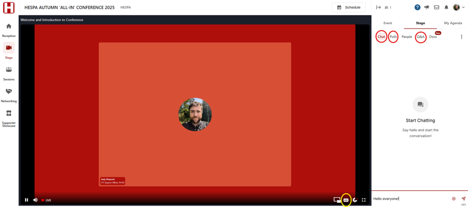 Click on the session you wish to attend, then click Join Stage to turn on your camera and microphone so you can take part in the discussion.