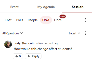 On the right-hand side is the delegate Chat and Q&A tabs - this is where comments and questions will appear. You can see who's in your session by clicking the People panel.