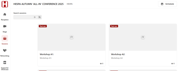 To join your session, click on Sessions in the left-hand menu, then select the session you'll be presenting in from the list.