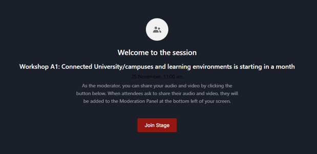 Click Join Stage to turn on your camera and microphone so you can take part in the discussion.