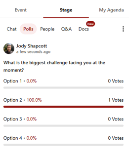Note: Delegates see a slightly delayed feed (around 15 seconds), so keep this in mind when running polls.